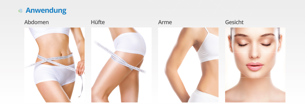 - Die RF liefert thermische Energie in die Dermis (Faserreiches Bindegewebe) und in die Subcutis (Unterhautfettgewebe), fördert einen schnelleren Stoffwechsel, strafft das Bindegewebe und verbessert die Elastizität der Haut.